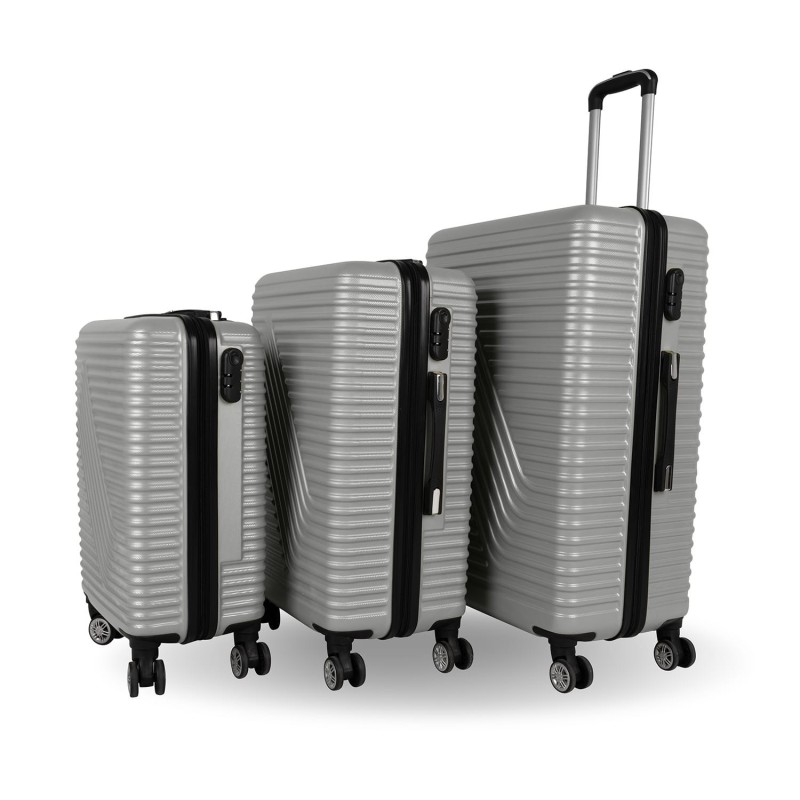Matériau supérieur : matériau solide ABS haute qualité Roues pivotantes : roues pivotantes à double rangées Composition : valise grande modèle valise moyenne et valise cabine Serrure TSA : serrure TSA verrouillé à 3 chiffres sure et fiable Valise PM : 55 X 36 X 20 CM Valise MM : 64 X 46 X 24 CM Valise GM : 75 X 50 X 30 CM Couleur : gris